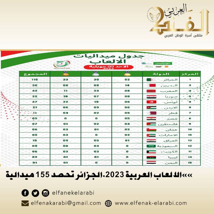 الألعاب العربية 2023: الجزائر تحصد 155 ميدالية
