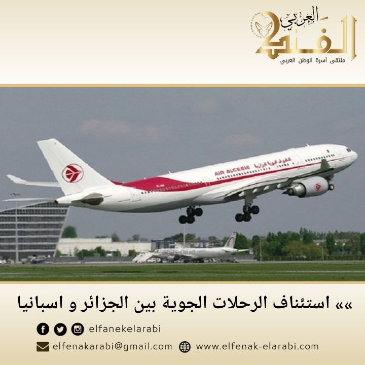 كشف المكلف بالاتصال بالجوية الجزائرية انه تم رسميا استئناف الرحلات الجوية بين الجزائر وإسبانيا ، و البرنامج الجديد نحو برشلونة سيبدأ بمعدل 7 رحلات أسبوعيا.