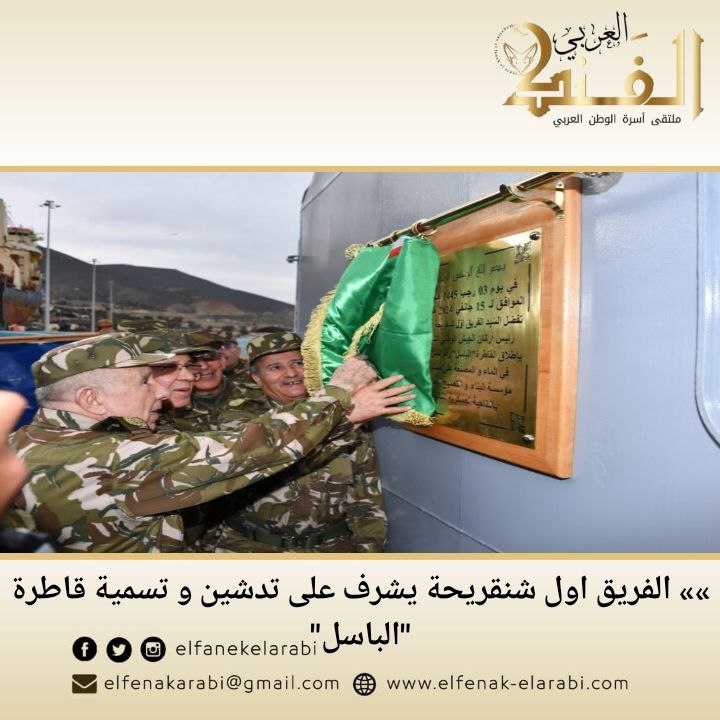 اشرف الفريق أول السعيد شنڨريحة، رئيس أركان الجيش الوطني الشعبي، مساء الإثنين، على مراسم تدشين وتسمية أول قاطرة تم تصنيعها على مستوى مؤسسة البناء والتصليح البحريين.