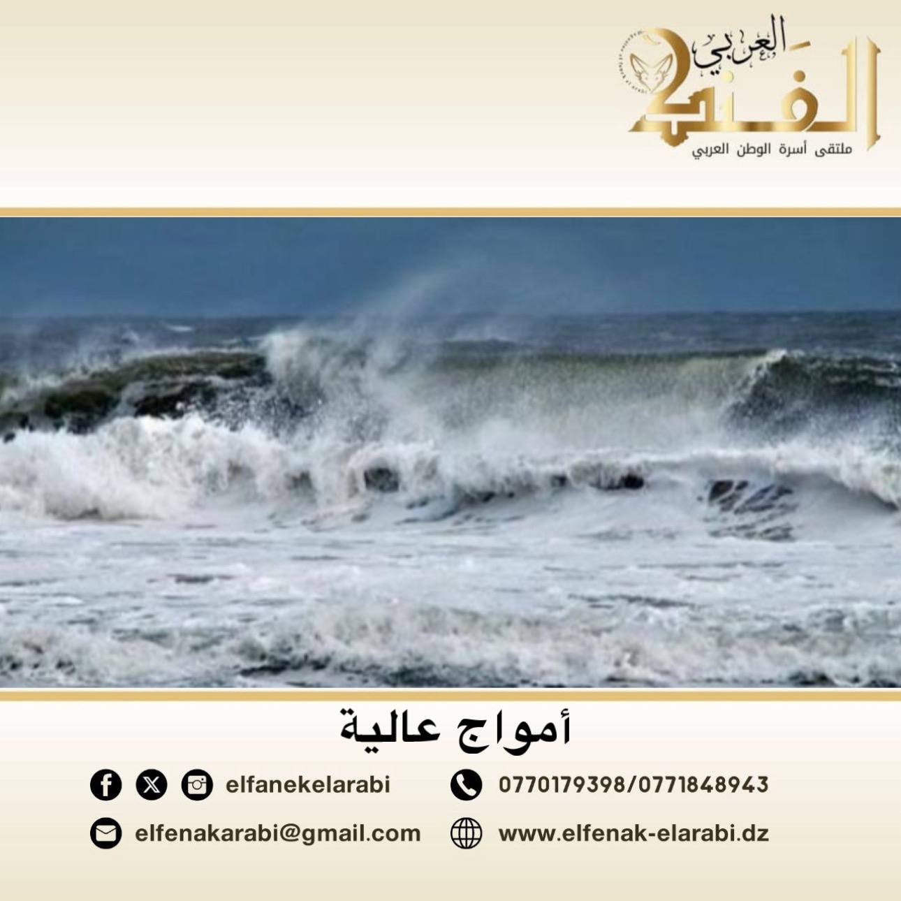 وافادت المصلحة ذاتها، أن الأمواج العالية تخص السواحل الممتدة من الجزائر إلى مرسى بن مهيدي. الجزائر، بوهارون، تنس. مستغانم، أرزيو، وهران، بني صاف، الغزوات، مرسى بن مهيدي.