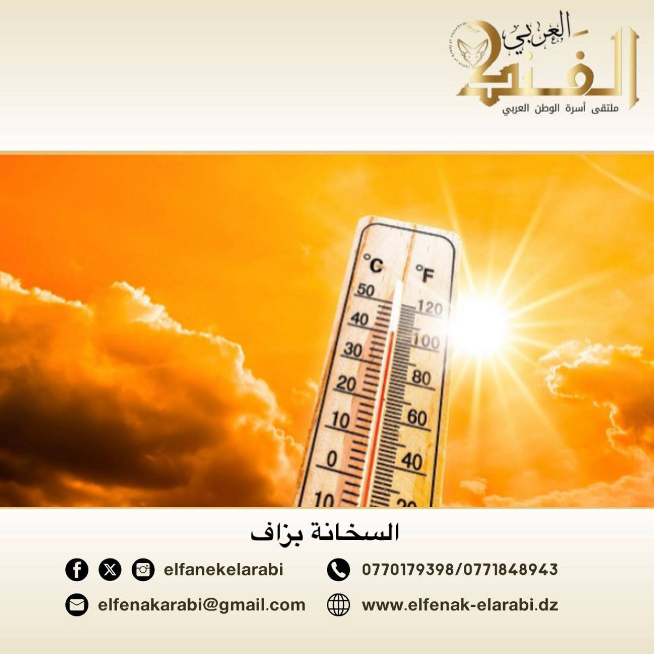وحسب تنبيه للمصالح نفسها، ستشهد ولايات الطارف، قالمة، سكيكدة، قسنطينة وميلة ارتفاع محسوس في درجات النهار طيلة نهار اليوم.